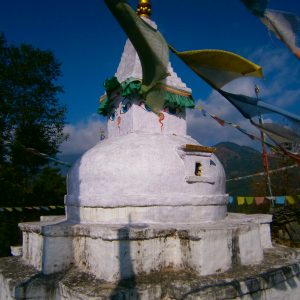 Tutt’attorno alle bandierine, invece, si trovano i mantra dedicati alle varie divinità con preferenza al mantra dedicato ad Avalokiteshvara, il Buddha della compassione del quale è la reincarnazione il Dalai Lama. Il mantra a lui dedicato è “Om Mani Padme Hum” che viene recitato senza sosta e in vari modi ovunque si incontri il buddhismo tibetano.